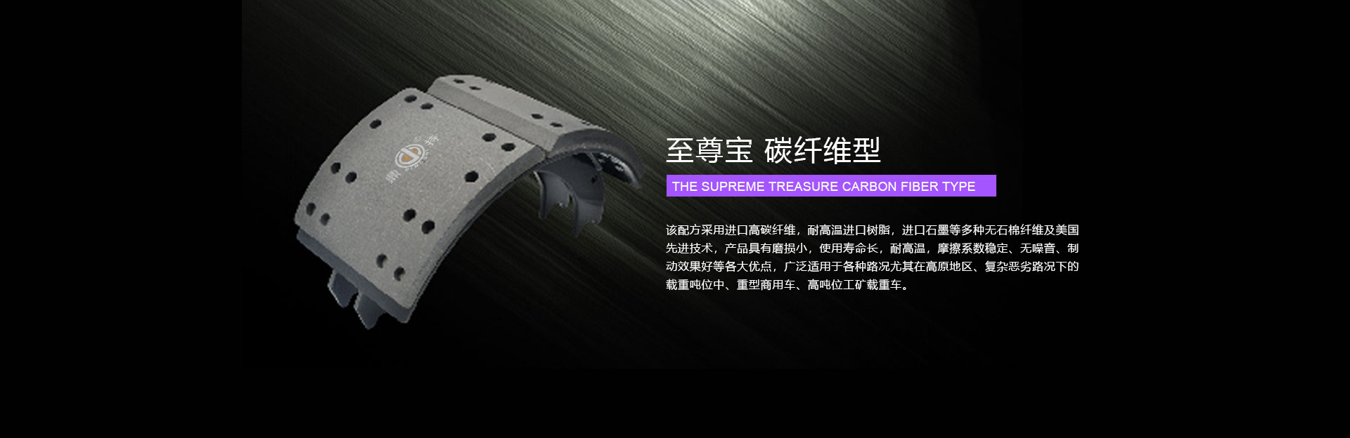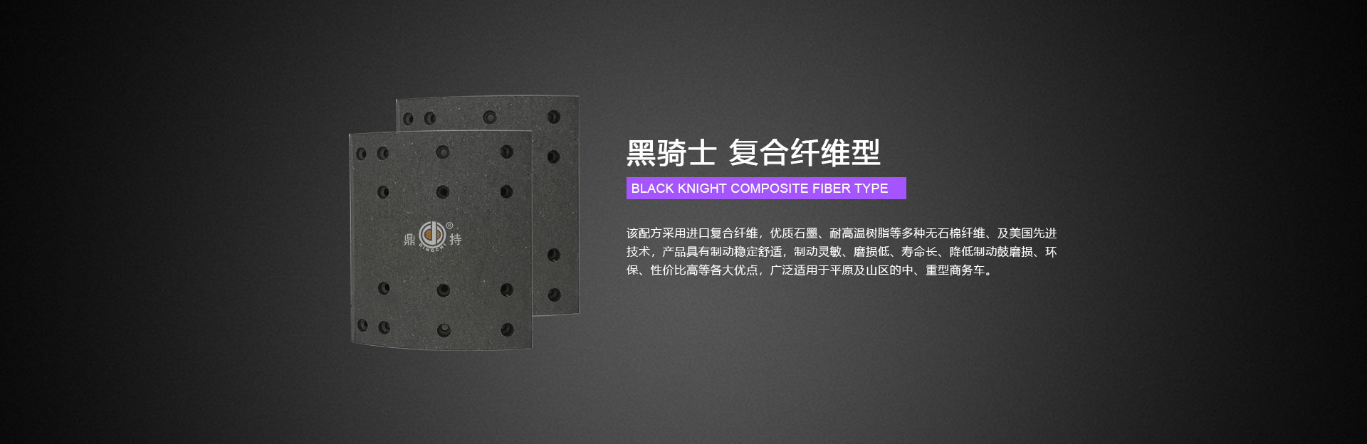 公司專業(yè)生產(chǎn)“鼎持牌”無石棉,無重金屬汽車用制動器襯片及重中型車制動蹄總成,產(chǎn)品通過美國FMVS121D標(biāo)準(zhǔn)臺架測及國內(nèi)汽車行業(yè)相關(guān)標(biāo)準(zhǔn),具有高強度、耐高溫,耐磨損、無污染、無噪音、性能穩(wěn)定的特點。該系列產(chǎn)品現(xiàn)銷往北美、歐洲、中東、澳洲等國家和地區(qū),以及國內(nèi)配套主機廠、售后服務(wù)市場。